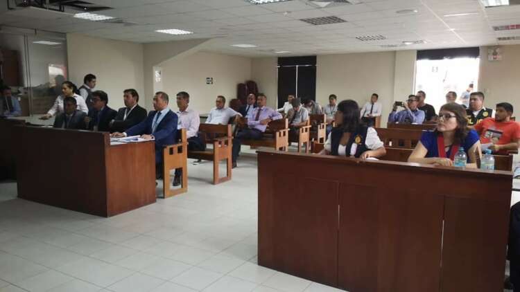 La Sala Penal de Apelaciones de Moyobamba, después de más de tres horas, suspendió la audiencia de apelación iniciada por los abogados de los investigados Ernesto Peña Robalino y Osmar Torres Díaz, empresario. Por: Jorge Canales