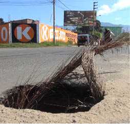 Cada día que pasa y ante las torrenciales lluvias el hoyo carcome el subsuelo, situación que afecta las bases de las viviendas, otro problema es que no existe una adecuada señalización y durante las noches no es visible el peligro.