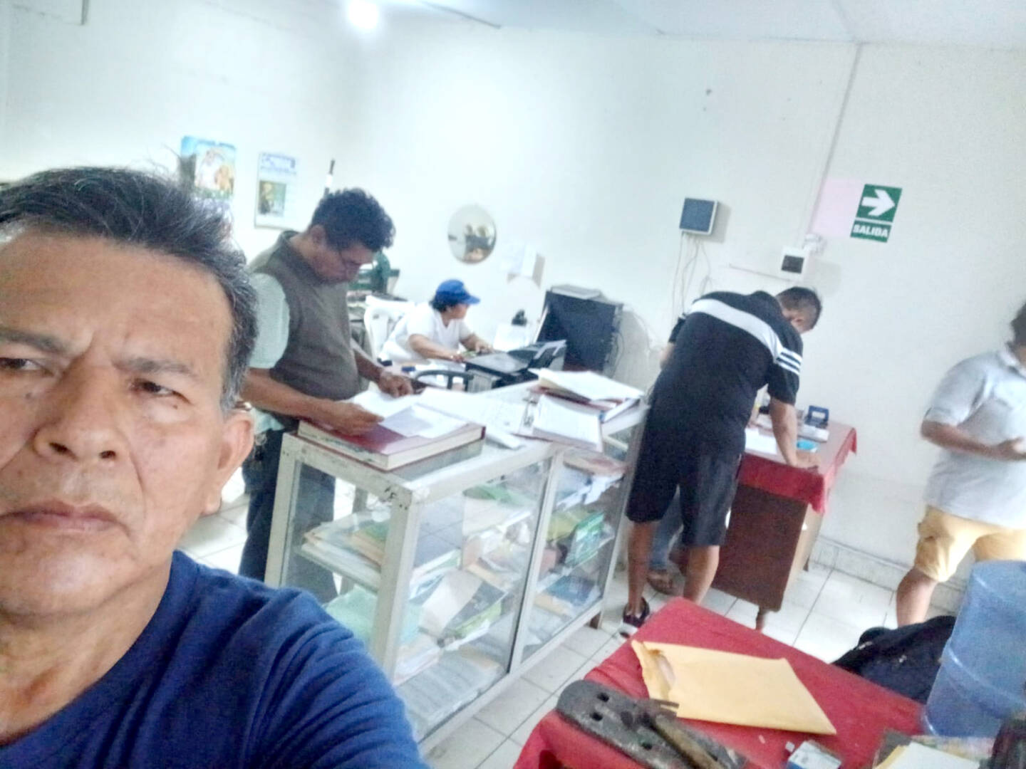 Texto de Imagen: Por haber sido impedidos de ingresar al Coliseo Cerrado, donde está el local de la Liga Distrital, los dirigentes tuvieron que realizar su trabajo cotidiano en la imprenta del presidente, cosas de lo que pasa en nuestro Perú.