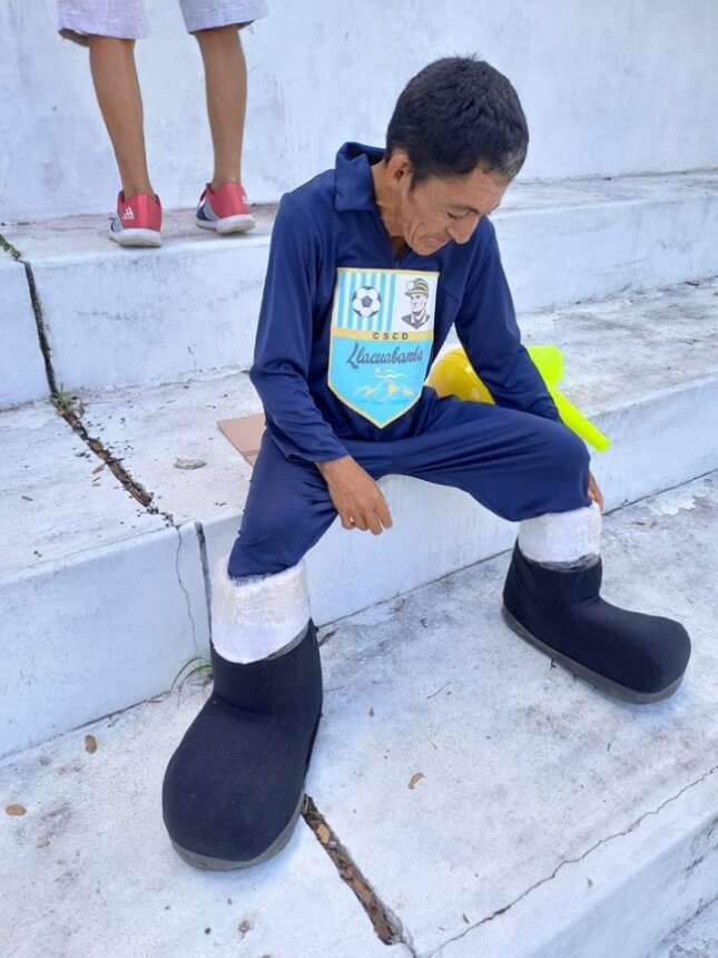 Texto de Imagen: JORGIN como se le conoce es un personaje del deporte, siempre apoyaba al Unión Comercio, ayer ya vuelta apoyó al Llacuabamba con su traje de minero, de ahí que muchos le califican como “comodín” o “judas”. Cosas de Jorgin.