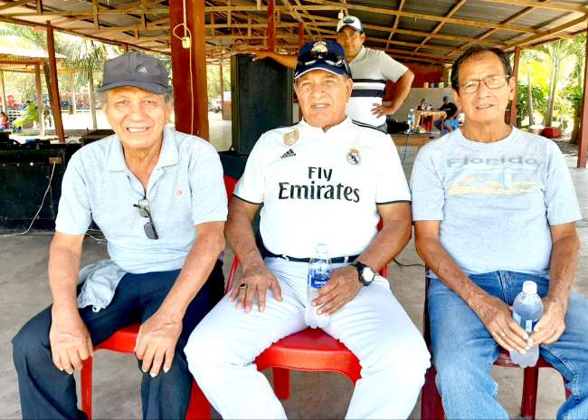 Texto de Imagen: De muchos años, nos reencontramos en el campeonato que lleva su nombre, Manuel Coba Ramírez, Willer Panduro Ríos y el que escribe esta columnita, rememorando esos tiempos pasados que hacíamos en las transmisiones deportivas.