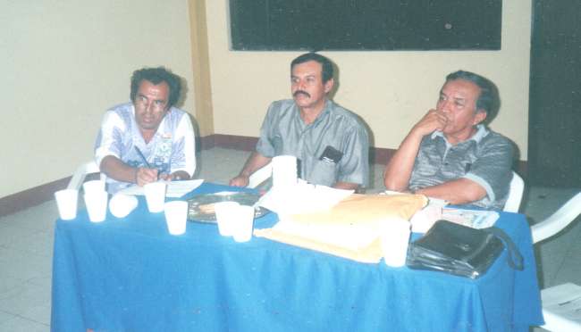 Texto de Imagen: Así se reunían los organizadores de las Olimpiadas Inter Colegios Profesionales, en la foto apreciamos a los Ingenieros Pedro “Perico” Pérez, Segundo Montilla Vela y el siempre recordado Choy. Ojala que otra vez se reinicien las Olimpiadas.
