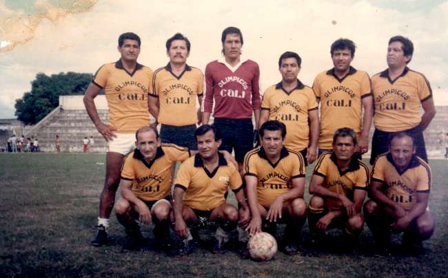 Texto de Imagen:: Los “Olímpicos del Cali” integrado por: Parados Angel “Shambo” Arce, “Bigotes” Morillas, Félix Serna, Abel “Tronquito” Ushiñahua, Carlos Augusto La Torre Bartra y Luís Yalta. En cuchillas Carlitos Vidaurre, “Chato” Luma, Rodríguiez, Zósimo Tenazoa y Maximiliano Mendoza Ocmín. Solo para recordar.