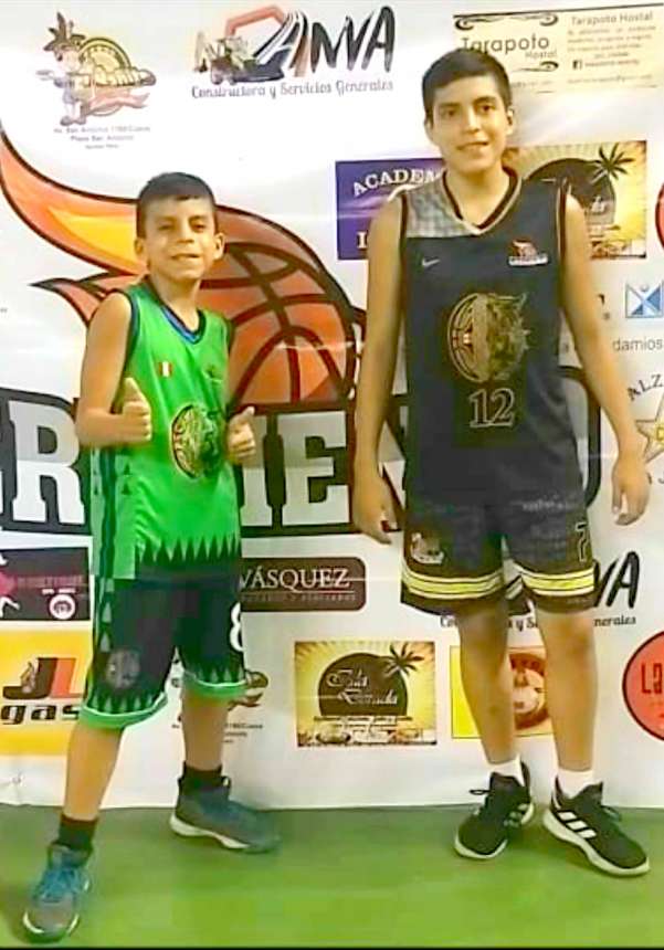 Texto de Imagen: Y estos? Son Zaid y Favio Panduro Vásquez jugadorcitos que vienen participando en la VII Copa Creciendo de Baloncesto, nietos de nuestro colega Willer Panduro Ríos que dice le sacan al abuelo por hacer él en canasta su mercado. Felicitaciones.