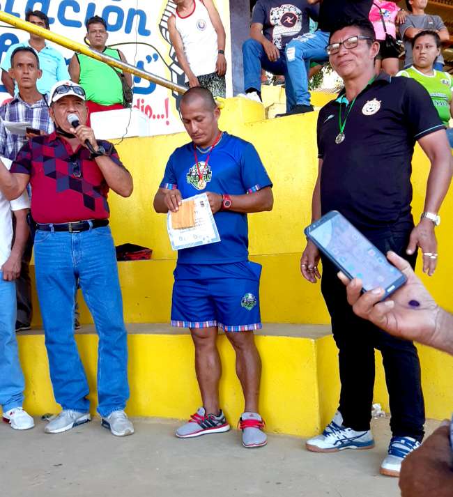 Texto de Imagen: Manuel Coba Ramírez en la ceremonia de clausura del campeonato Sub-15 que llevó su nombre, con emotivas palabras agradeciendo a todos los equipos participantes, a los entrenadores y al público que se hicieron presentes a mirar los partidos de lase semifinales y gran final.