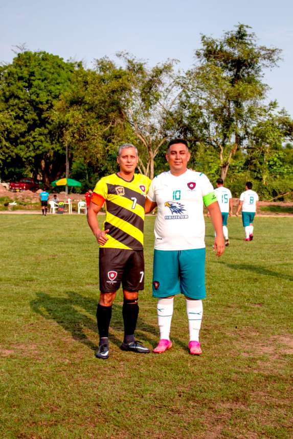 Texto de imagen: Los Abogados Erik Arévalo, hijo de Manuel “agüita de coco” Manuel y Manolo Flores hijo de Humberto que de acuerdo a las informaciones es el goleador del campeonato, pero no sabemos con cuantos goles.