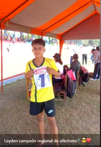 Texto de Imagen: Este chiquillo Leiden Reátegui Alava, agradece a los que integran “Los Madrugadores” por el apoyo que le brindaron, logrando su participación en la Nacional del Deporte Escolar, él y su entrenador son de Barranquita.