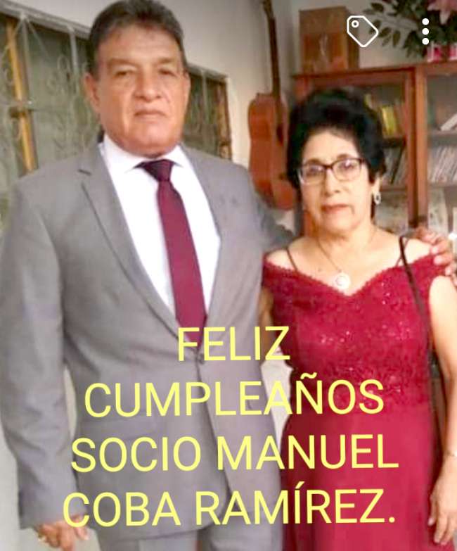 Texto de Imagen: Saludos para nuestro colega Manuel Coba Ramírez que ayer estuvo de “santoyo” muchos años más de vida estimado amigo, identificado con nuestra radio, aquí junto a su esposa Valencia.