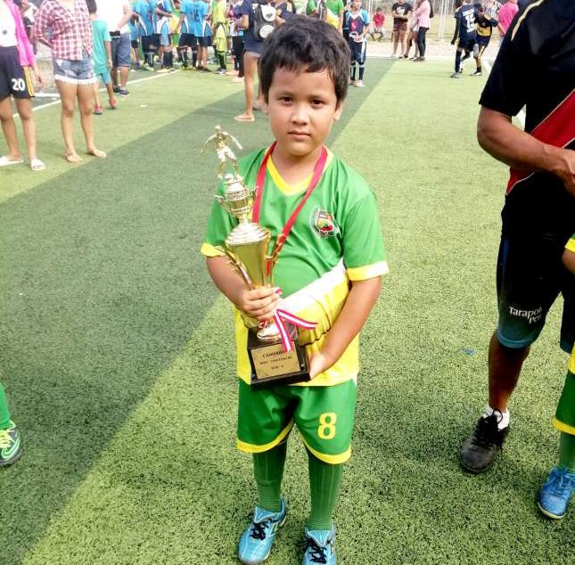 Texto de Imagen: Josemir Saúl Tuesta Pozú integrante de la Sub-06 de la Municipalidad Distrital de Cacatachi, con esa carita angelical mostrando el trofeo y medalla por haber obtenido el título respectivo, este muchachito es hijo de José Tuesta Torres y Yensly Pozú que junto a sus hermanos están alegres por el “huinshito”. Felicitaciones.