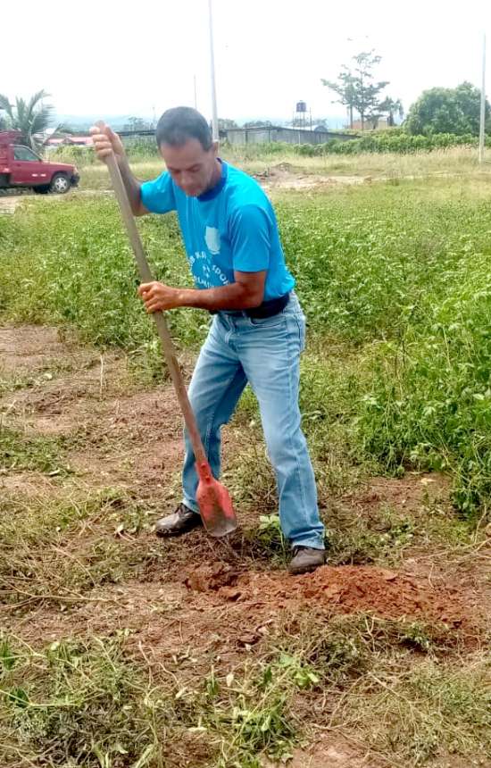 Texto de Imagen: Nuestro colega el “Ruso” José Tuesta Torres en la jornada de trabajo que realizamos los circulistas en nuestro terreno donado por la Municipalidad Distrital de Morales. Vale la identificación.