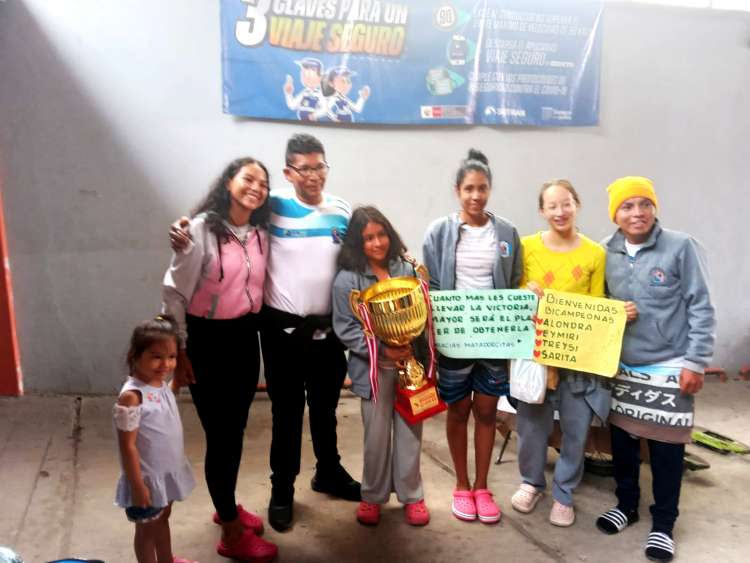 Texto de Imagen: Eymiri Jackeline Díaz Zegarra, Amily Alondra Meléndez Cahuaza, Treisy Cristel Flores Macedo y Sara Olinda Sifuentes Zuta, orgullosas mostrando el trofeo del binacional de voleibol menores traído desde Cajamarca, dando de esta manera lauros al deporte sanmartinense. Bienvenidas chiquillas y gracias por este máximo galardón.