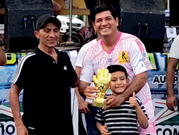 Texto de Imagen: Pese a su veteranía Nicolás Macedo sigue sobre saliendo en los equipos que juega, aquí recibiendo el premio del mejor arquero de la Copa Tarapoto del año pasado.