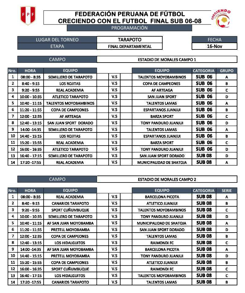 *** Les invitamos hoy y mañana al Estadio de Morales para apreciar hasta mañana domingo la fase departamental de “Creciendo con el Fútbol” Sub 06 y Sub 08 años, todos los encuentros serán eliminatorios y mañana se deben conocer a los dos representantes departamentales que pasarán a las otras fases. Aquí los partidos de hoy sábado: …… (colocar Aarón los cuadros que te estoy enviando a parte….