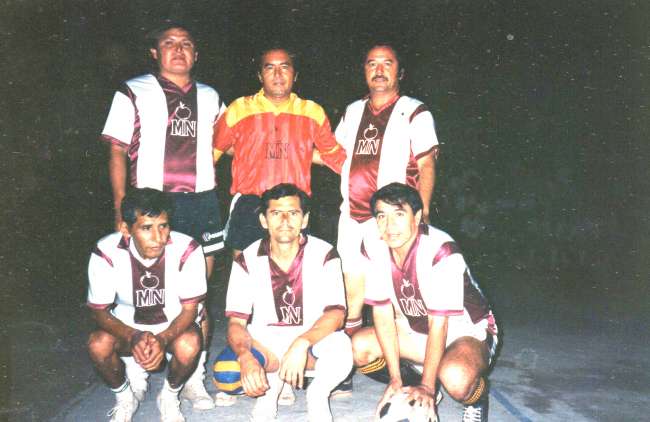 Texto de Imagen: Equipo de fulbito cuando se realizaban los campeonatos por aniversario de FONAVI. Parados Widico, Juan Carlos Arce y Ing. Arévalo, sentados: Oliveira, Lucho Alva y “Chelis”, solo para recordar