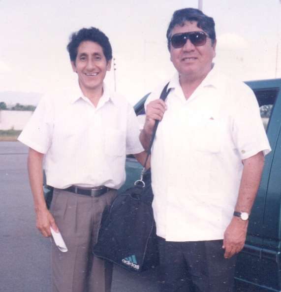 Texto de Imagen: El Ing. Vargas Contreras Ciro Granados, junto a el desaparecido ex árbitro de fútbol César Orosco cuando venía para evaluar a nuestros árbitros de San Martín. Don Ciro debe ser homenajeado pronto por ex jugadores del Tumi.