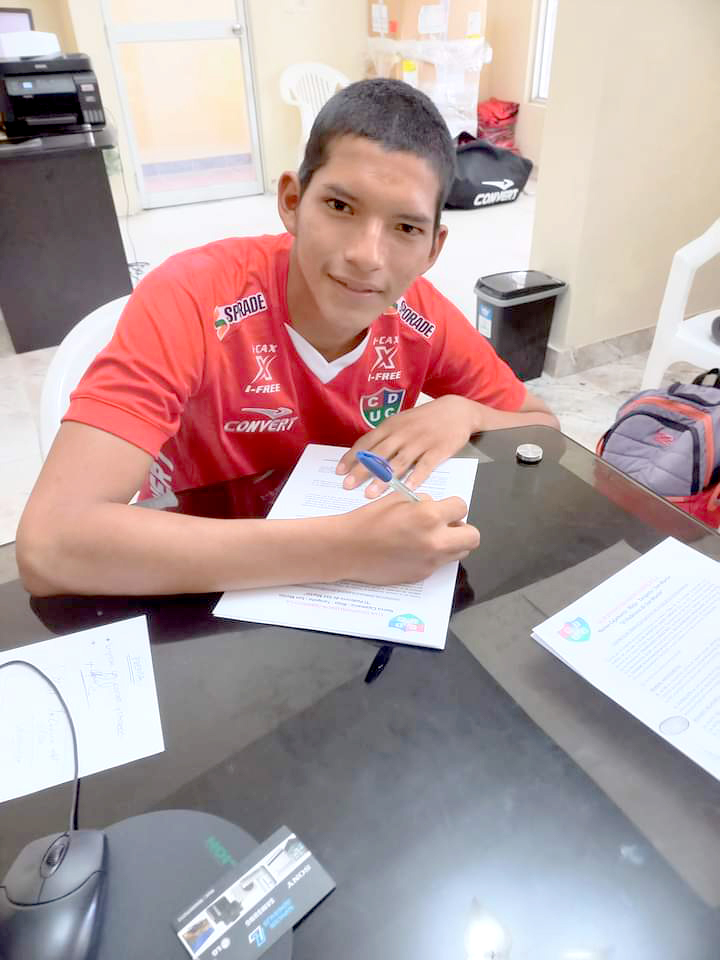 Texto de Imagen: Felicitamos a Diego Armando López Quispe por su primer contrato firmado con Unión Comercio, ahora dependerá de él para que siga progresando en ese difícil puesto de arquero.