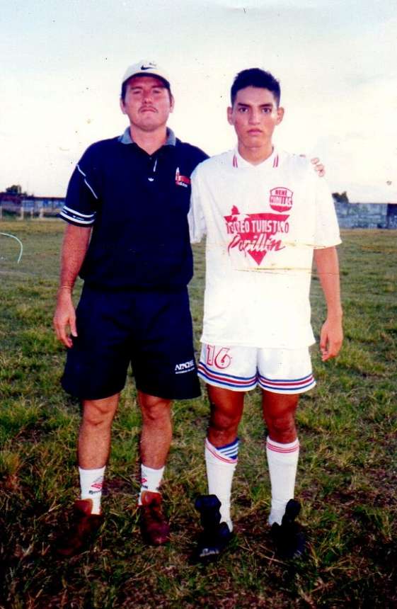 Ricardo “Paque ya” Becerra otrora gran futbolista, junto a su hijo Franks Erikson cuando defendió al Nene Cubillas, ahora Franks lleva la herencia pelada de su padre.
