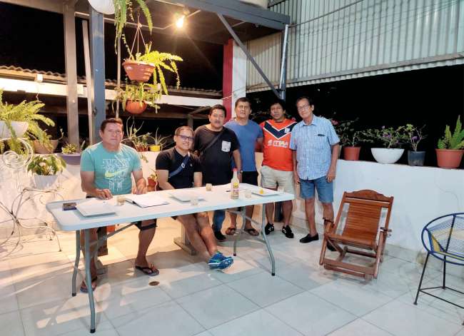 Texto de Imagen: Ex jugadores del Tumi, acordando el homenaje que deben darle al Ing. Vargas Contreras Ciro Granados, podemos notar al “Moyocho” Fernando Ruíz, Gary Torres, Donalton “Pastoriza” Sinti, César del Aguila, Luis “Moralino” Arévalo y este humilde servidor.
