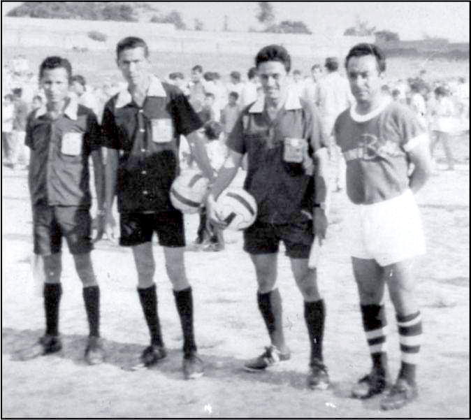 Texto de Imagen: Arbitros tarapotinos que demostraron su honestidad por lo que siempre les recordaremos aquí al centro Nelson “Araña” Rojas y a su hermano Waldemar Oliveira, con uno de los también ya no está con nosotros el árbitro “juguero” creo que se llamaba Delfín y uno de los jugadores también antiguos de nuestro fútbol.