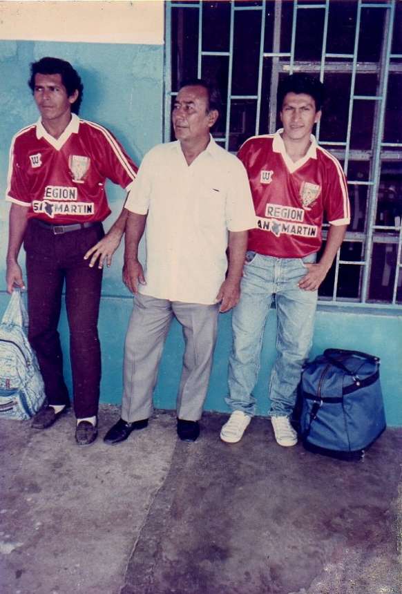 Texto foto: Nuestro siempre recordado Adolfo Lavi Maldonado, fue DT del combinado tarapotino que viajó a Pucallpa, aquí junto a Reimer “Medio equipo” Ríos y Rolly Saavedra.