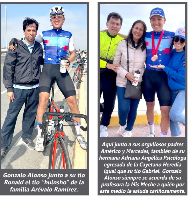 *** Los que de verdad seguimos de cerca las actitudes deportivas de los hijos de nuestra ciudad, nos alegramos al conocer que por sus propios méritos y gasto, silenciosamente vienen dejando en alto a la tierra que les vio nacer, nuevamente queremos felicitar a Gonzalo Alonso Arévalo López que como antes triunfo en ciclismo en Iquitos, la semana pasada ocupó el tercer lugar en el Campeonato Nacional de Ruta 2023 Lima-Perú organizado por la Federación Deportiva Peruana de Ciclismo (FDPC) en las competencias Contra el Reloj 40 Kms. Y campeonato de Ruta 140 kms. Sus padres y hermana y creo todos los que vivimos en esta quimérica tierra nos alegramos de lo que viene haciendo este joven profesional tarapotino, dejando en alto a su tierra y Departamento.