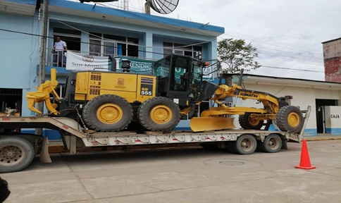 Primero llegó el rodillo de la marca CATERPILLAR y el día de ayer en horas de la mañana arribó la motoniveladora marca KOMATSU y según manifiesta el Gerente Municipal Deciderio Shapiama Gómez, en las próximas semanas llegarán dos volquetes más con las que se completaría la adquisición con un monto aproximado de inversión de dos millones quinientos mil soles