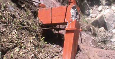 La base afectada corresponde al que se ubica al margen izquierdo del río Mayo, donde la afectación es notoria, desde hace más de tres meses las bases de concreto que sostienen a las sogas de acero que soportan el huaro han soportado, hasta hoy, toneladas de tierras y troncos que cayeron sobre ellas.
