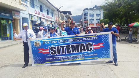 Juanjui. “La huelga de los maestros de las bases distritales, provinciales y regionales del Sindicato Unitario de Trabajadores por la Educación del Perú (SUTEP), no es contra la dirigencia sutepista de Patria Roja en San Martín, sino es contra el gobierno a través del Ministerio de Educación, en reclamo de nuestros justos derechos por años vulnerados”, fue enfático fue el dirigente del SITEMAC- Sindicato de Trabajadores en la Educación de Mariscal Cáceres-Juanjuí, Ronalt Ramírez Vásquez, tras mostrarse sorprendido ante las desconcertantes declaraciones de dirigentes de Patria Roja que salieron a los medios a despotricar contra la huelga que libran los maestros.