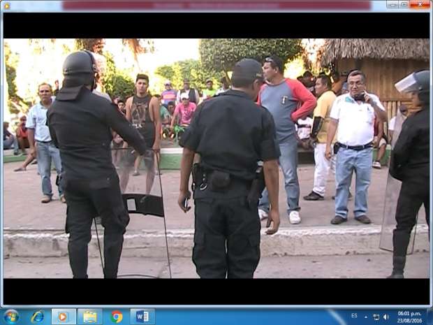 Manifestantes burlando el cordón policial ingresaron a la plaza de armas de la ciudad de Juanjui, ubicándose en el frontis de la Municipalidad por el espacio de más de 30 minutos, ratificando su pedido al alcalde, la destitución del Gerente Kike del Águila Velásquez y del Administrador Hipólito Saldaña Pérez.