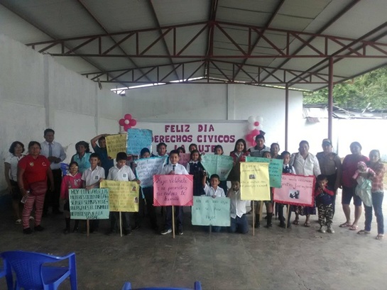 Huicungo. A pesar del clima y algunos pequeños retrasos por una ligera lluvia, se logró realizar la conmemoración de los Derechos Cívicos de la Mujer, así como el Día de la Familia en el distrito de Hiucungo.