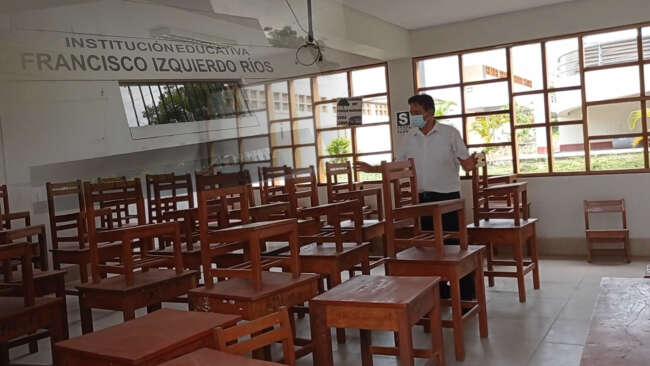El colegio Francisco Izquierdo Ríos de Morales, tiene previsto empezar las clases el próximo 14 de marzo como lo estipula el Ministerio de Educación. El gran problema del presente año es dónde acomodarán a los niños y jóvenes que se cambiaron al plantel el año 2020 por pandemia, cada aula recibió más de 5 estudiantes, así lo dio a conocer el Director de la Institución Prof. Aldo Grandez Carranza.
