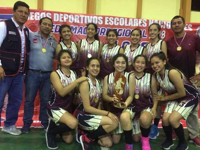 La I.E.” IGNACIA VELÁSQUEZ” de Moyobamba se coronó campeón en la disciplina de basquetbol femenino categoría 17 años de la etapa macro regional del deporte escolar 2018 , la misma que se realizó en la ciudad de Iquitos, luego de sortear a sus rivales de Pucallpa, Chachapoyas, hoy en la final se impuso categóricamente al equipo local la I.E.SAGRADO CORAZÓN por 58 a 30, resultado que dice a las claras la superioridad del cuadro moyobambino dirigido por el profesor Wilson Torres Díaz, quien a su vez suma otro palmares a su trayectoria como técnico de basquetbol en el ámbito escolar.