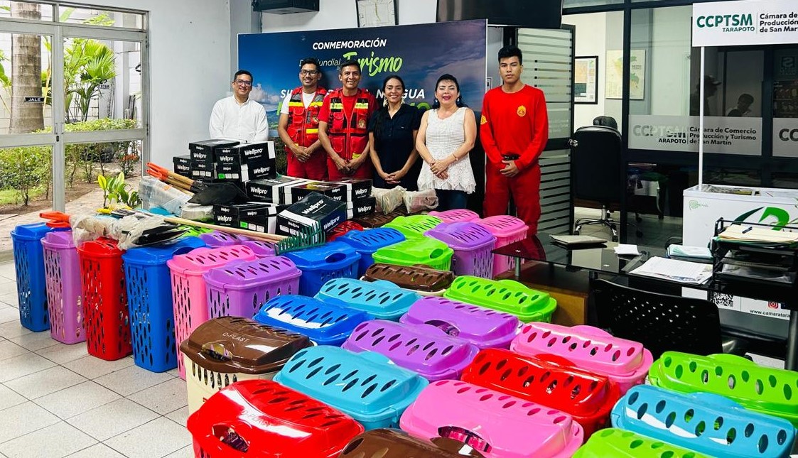 IIRSA Norte no dejó de lado a la Cámara de Comercio, Producción Turismo de San Martín Tarapoto, entregando 50 canastas, herramientas y equipos de protección personal para quienes se encontraban combatiendo activamente el fuego. A los Bomberos de la Bomba 71 de San Martín, se donaron herramientas para 20 de sus miembros.