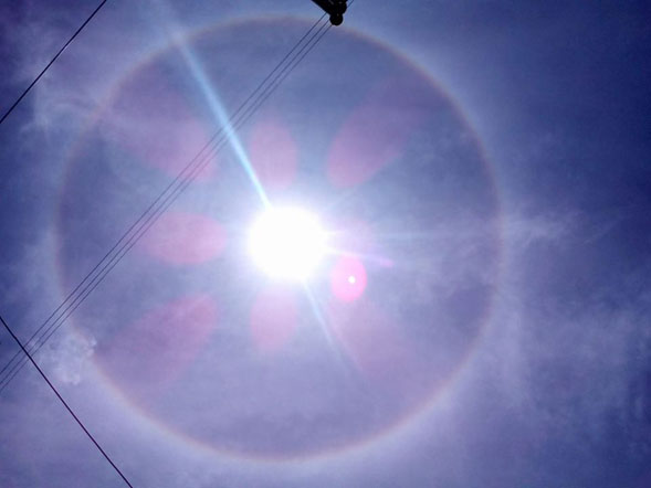 Hay que mencionar que de acuerdo a la explicación científica, este acontecimiento que se parece en forma de anillo alrededor del Sol, se produce por la reflexión de la luz sobre los cristales de hielo de las nubes. (Franclin Laván)