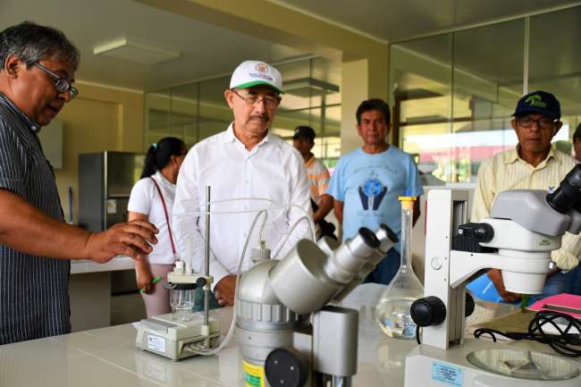 En la cita, acompañado por el Gerente de Desarrollo Económico del Goresam Daniel Vásquez Cenepo y del director de la Estación Experimental Agraria El Porvenir Kennedy Pacífico Farje Alva, recorrió los ambientes de las nuevas instalaciones de los laboratorios construidos en un área de más de mil metros cuadrados, que cuentan con salas especiales para el análisis de suelos, semillas, agua, de recursos genéticos, post cosecha y agroindustria, además de áreas de trabajo de siembra, depósitos de reactivos, cámaras frías, almacenes especiales, entre otros.