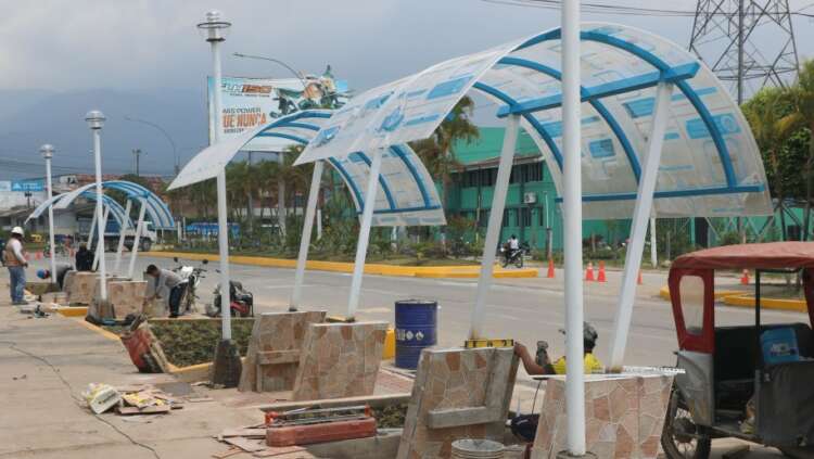 Se instalaron 28 bancas con su techo cubierta de policarbonato transparente, para mejorar el ornato de la ciudad con una entrada atractiva para los visitantes, sin embargo, las estructuras a los pocos meses lucen descuidadas y desmanteladas por gente de mal vivir, sin que exista una respuesta de la autoridad municipal y policial.