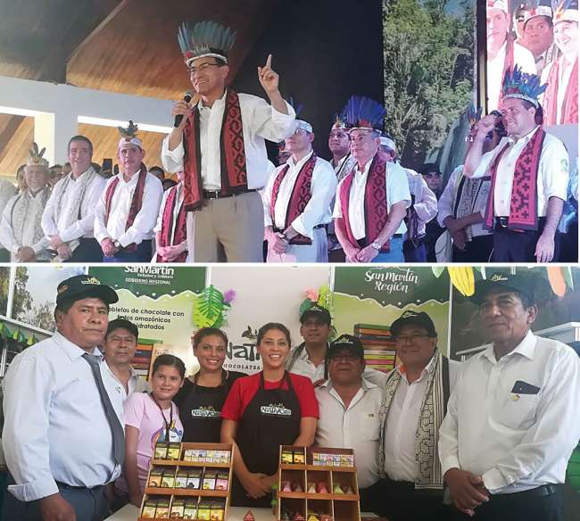 El gobernador regional de San Martín en compañía de los demás gobernadores regionales, visitaron los más de 55 stands sanmartinenses y se deleitaron con los chocolates y licores amazónicos, considerándolos como productos bandera.