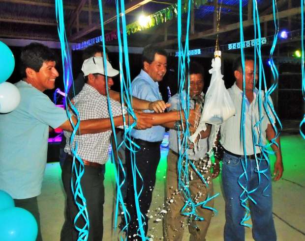 Luego de la rotura de la botella de champan y corte de cinta declararon inaugurado este moderno local comunal, por parte del alcalde y el presidente de la Junta Vecinal, les ofrecieron una recepción a los invitados con una cena, para concluir con un baile popular amenizado por la Agrupación “ La Única Pusanga”. (Carlos Velásquez Sánchez)