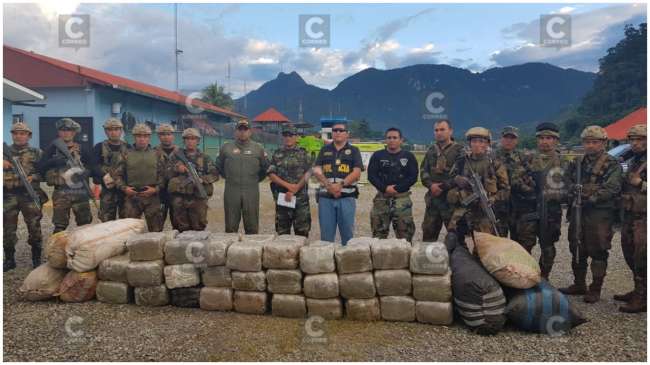 En la intervención la Policía logró la incautación de 58 paquetes prensados y 6 costales conteniendo la marihuana, que arrojó un peso bruto de 307.215 kilogramos de esta planta. Asimismo, con la disposición del fiscal Javier Cáceres Alarcón, se destruyeron 6 hectáreas de plantación de marihuana con miles de plantas listas para su cosecha, un horno para secado y una prensadora.