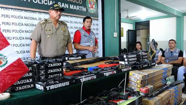 El jefe operativo de la SUCAMEC, destacó el apoyo de la Policía Nacional para ejecutar la redada. La presentación de las armas y municiones incautadas fue en una conferencia de prensa en el auditorio de la región policial en Tarapoto.