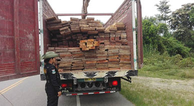 A las dos de la mañana del miércoles, personal de la División de Medio Ambiente de la Policía Nacional de Perú y personal de la Unidad Operativa de Gestión de Flora (UOGFS) del ARA-SM, en circunstancias que realizaban un operativos en inmediaciones del km. 5.5 de la carretera Tarapoto – Yurimaguas, con apoyo del personal COMPRCAR-T., con la finalidad de detectar, intervenir y contrarrestar el transporte, comercialización ilegal de producto forestal maderable, intervino el vehículo mayor (camion – FUSO) placa de rodaje A4T-924, el cual era conducido por Marcial Claudio Tinoco Ninahuamán (31).