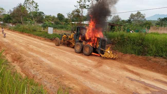 Mientras realizaban mantenimiento en la vía que conduce al centro poblado de Bello Horizonte, una motoniveladora ardió en llamas, los trabajadores y vecinos del lugar tomaron acciones inmediatas para controlar el fuego. El conductor resultó ileso y se desconoce la causa que habría generado el siniestro.