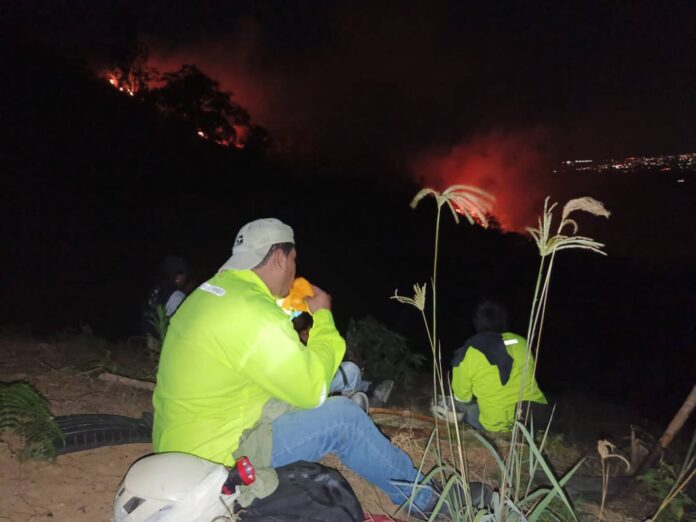El fuego comenzó alrededor de las dos de la tarde y en pocas horas se tornó incontrolable. Pasadas las siete de la noche, un grupo de 16 voluntarios, entre ellos 12 jóvenes de la Asociación Ambiental Brigada Verde, llegó a reforzar las tareas de mitigación junto a la brigada comunitaria organizada por la Municipalidad de Cacatachi.