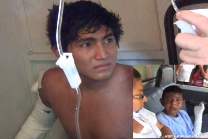 Los heridos fueron identificados como Luis Fernando Sosa Flores de 18 años de edad, quien presenta quemaduras de segundo grado en la espalda y en el brazo derecho, la peor parte se llevó Gabriel Pérez Flores de 10 años de edad, al resultar con quemaduras también de segundo grado en más  del cuarenta por ciento de su cuerpo, las víctimas fueron trasladadas de emergencia al centro de Salud de Morales, de donde fueron transferidas al Hospital Regional de Tarapoto.