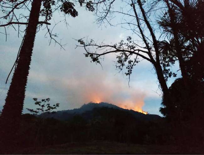 Moyobamba. Un nuevo incendio forestal que se inició la tarde del domingo arraso más de 40 hectáreas entre bosques y sembríos ubicados en la zona del cerro Oromina, colindante con el atractivo turístico de los Baños Sulfurosos.