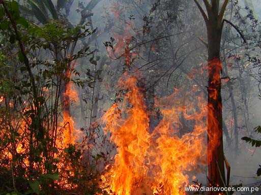 Un incendio forestal se registró en la quinta cuadra del jirón Tarapoto del distrito de Morales, poniendo en zozobra a los vecinos de la zona, información preliminar de Defensa Civil de esa jurisdicción revela que el siniestro se originó cuando unos adolescentes trataron de quemar un panal de avispas.
