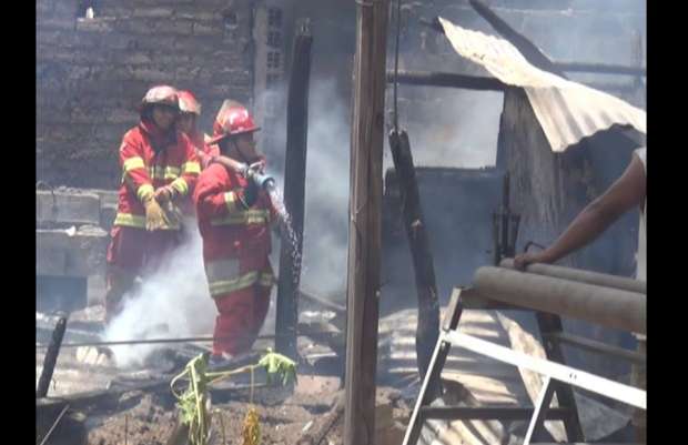 Los bomberos lograron controlar por completo las lenguas fuego que amenazaban con avivarse y expandirse a otros predios. Francisco Pinchi Sánchez, responsable de Defensa Civil del distrito llegó hasta el lugar para evaluar los daños e indicó que hoy jueves entregaran apoyo. (Hugo Anteparra)