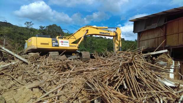 El Ministerio de Vivienda, Construcción y Saneamiento informó hoy que ha incrementado la maquinaria pesada para realizar los trabajos de limpieza, encauzamiento, eliminación de escombros de viviendas colapsadas y drenes de la vía pública en la provincia de Picota San Martín, luego de sufrir el desborde del río Ponaza dejando a cientos de pobladores afectados.