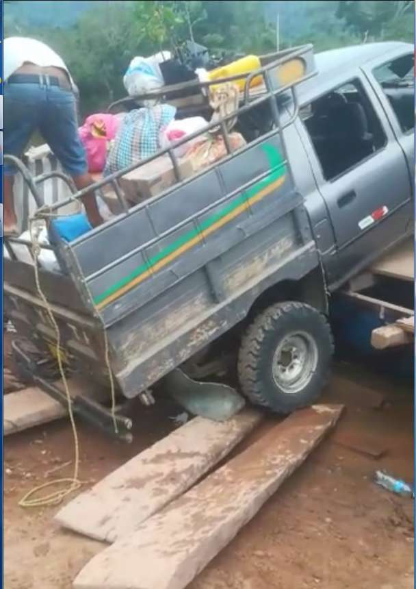 Una camioneta estuvo a punto de caer al río Mayo cuando el conductor intentaba cruzar la balsa cautiva en el Puerto Metoyacu, hecho ocurrido el último sábado, al parecer las tablas que utilizan para el acceso a la embarcación se deslizaron originando que la parte posterior de la camioneta quede suspendida y a punto de caer al río.
