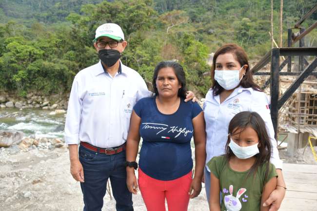Al respecto, el gobernador regional Pedro Bogarín Vargas acompañado de la vicegobernadora Nohemí Aguilar Puerta remarcó que “sin carreteras y sin puentes no hay posibilidad de seguir adelante. Por eso, con la ayuda de esta obra que pronto les entregaremos, podrán trasladar su producción de café, cacao y plátano lo cual antes era imposible”.